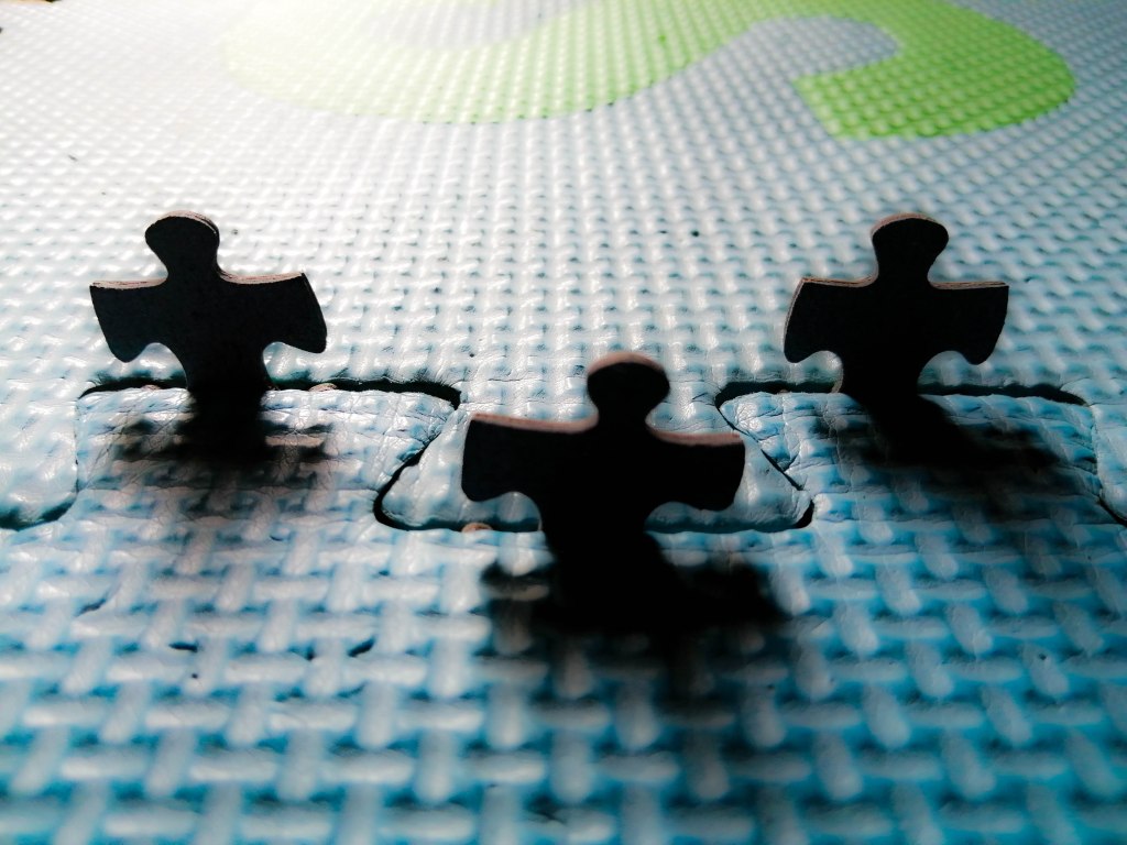Un alignement de pièces de puzzle dans l’enchevêtrement de dalles en mousse pour enfant rappelle la configuration d’un cimetière américain. Que révèle ces images sur l’autisme ou sur le monde ? La puérilité de la guerre ? L’exclusion mortifère des enfants différents ? De la mortalité dans le conflit psychique ? L’aboutissement d’un passage ? La légèreté de l’enfance ?…