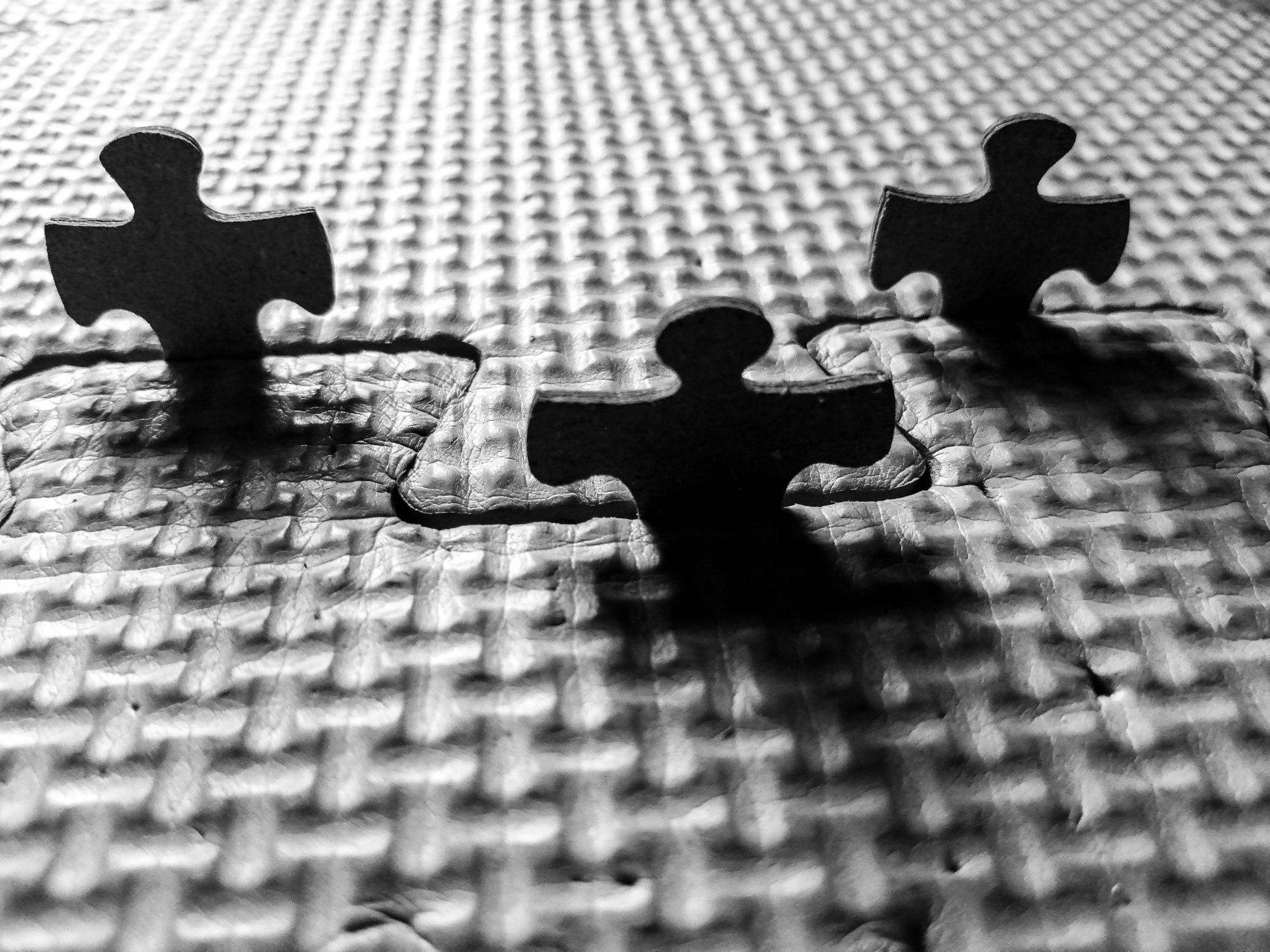 Un alignement de pièces de puzzle dans l’enchevêtrement de dalles en mousse pour enfant rappelle la configuration d’un cimetière américain. Que révèle ces images sur l’autisme ou sur le monde ? La puérilité de la guerre ? L’exclusion mortifère des enfants différents ? De la mortalité dans le conflit psychique ? L’aboutissement d’un passage ? La légèreté de l’enfance ?…